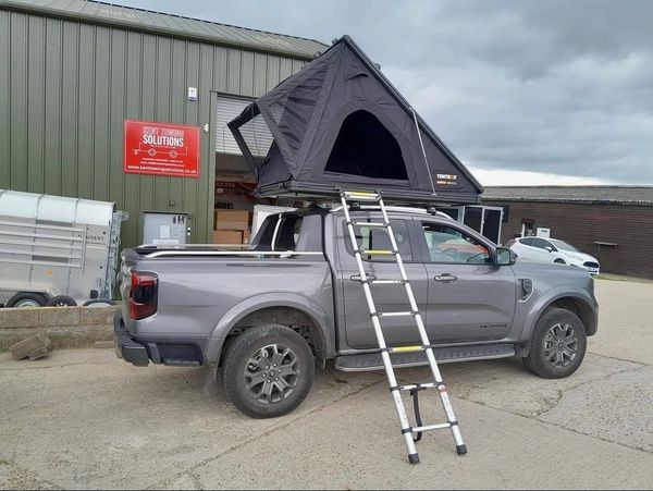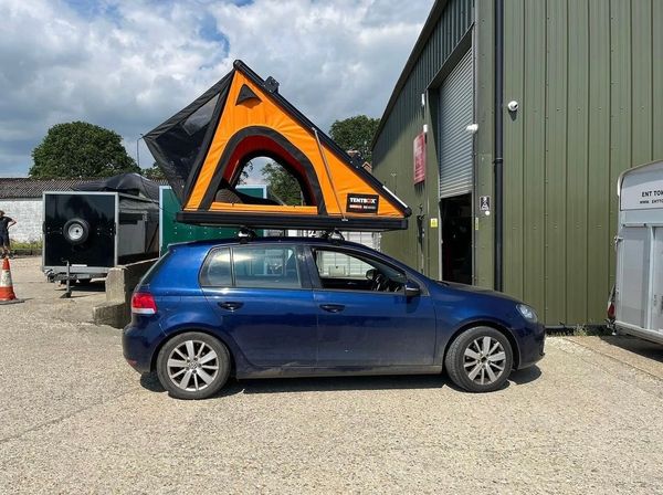The GO is a lightweight, stripped-back roof tent, designed by TentBox to be affordable and versatile. It comfortably sleeps two people on a stretched fabric bed.